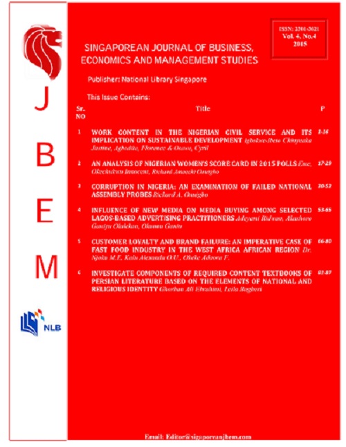 admin, D. N. M. P., Kalu Alexanda O.U., & Okeke Adaora F. (2015). CUSTOMER LOYALTY AND BRAND FAILURE: AN IMPERATIVE CASE OF FAST FOOD INDUSTRY IN THE WEST AFRICA AFRICAN REGION. Singaporean Journal of Business Economics and Management, 4(4), 66–80. Retrieved from http://singaporeanjbem.com/index.php/SJBEM/article/view/358